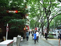 1920年に整備されケヤキ並木も立派な表参道。表参道ヒルズなど大型商業施設が軒を連ね、常に賑わっている。遊歩道は表参道を越え神宮前4丁目方面に続く。